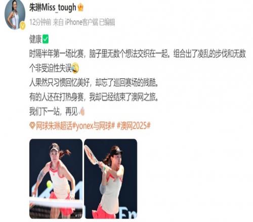 朱琳社媒:有的人还在打热身赛,我却已经结束了澳网之旅
