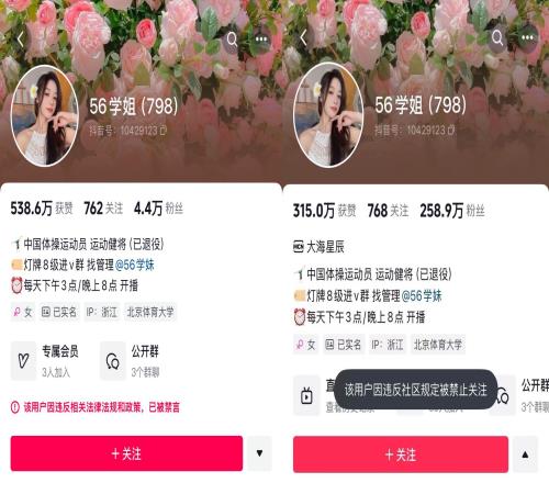 此前,吴柳芳的抖音账号还曾因违反规定被禁止关注,一周后才解禁。
