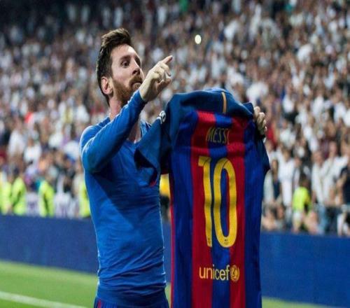 2017年4月23日国家德比中,梅西在伯纳乌打进锁定胜局的进球后,他脱下球衣向现场观众展示。