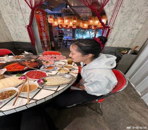 今天,申裕斌社媒总结比赛,她同时还晒出品尝成都火锅的照片,并配文:“谢谢
