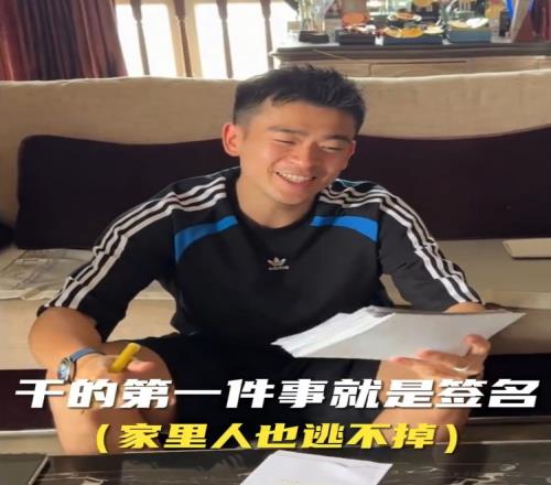 体育资讯8月24日报道宣称 郑思维在社媒晒vlog,他表示自己回家后成了签名机器,父母和奶奶准备了很多照片和衣服让他签。
