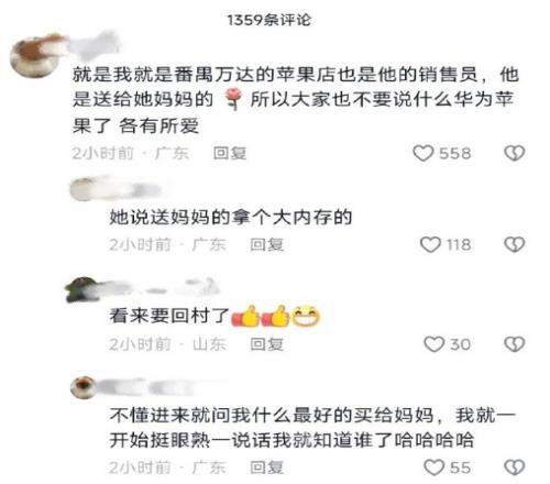 店员在评论区回复网友:全红婵说给妈妈拿个大内存的,进来就问什么是最好的。一开始挺眼熟,一说话就知道是谁了。