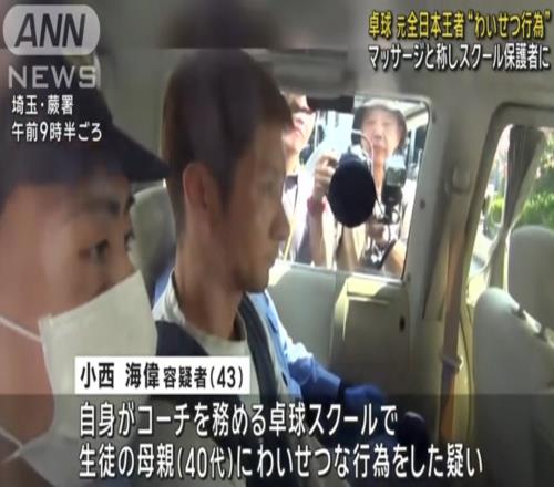 小西海伟涉嫌以指导、按摩为幌子,在一家乒乓球学校对一名学生的母亲进行身体接触等猥亵行为,而他本人告诉埼玉县警方,自己给她做了按摩,但否认有任何猥亵的意图。