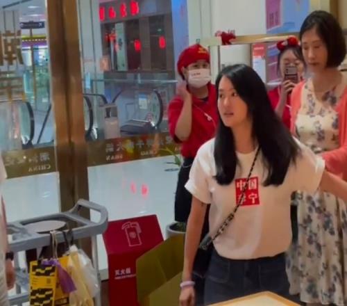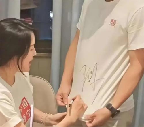 陈若琳背着斜挎包,衣着简单。在店里,很多顾客拿着手机拍照,求签名,求合影,陈若琳也满足了大家的要求。