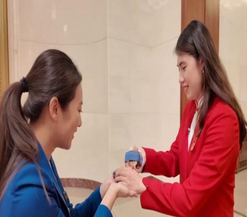 张雨霏说:“上一届就4块奖牌,4块的话还轻松点,这届6块实在是有点抓不下了。来你试试。”
