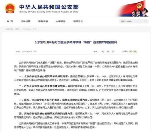 什么是饭圈乱象?目前公安立案拘留的几个,都是在网络上诋毁造谣运动员教练员的,刑拘的两个是造黄谣的,行政拘留的是颠倒事实故说八道的。至于中国乒协声明中提到的干扰运动员教练员私生活空间的,虽目前还没有被查办的案例,但这确实也是个很普遍的现象。比如孙颖莎、樊振东这样的国乒主力,个人私密信息被透露,这也是典型的饭圈乱象。