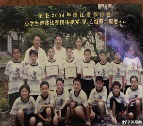 徐嘉余配文:“偶然间翻到小学毕业同学录和照片……有一个1万小时定律,而我与游泳也一同走过了8376天,也会相信超过10000天!感谢这一路走来如此执着于热爱的自己,也感谢现在依然在奋勇拼搏的自己。今天祝自己生日快乐,保持热爱,继续加油,谢谢你们。”
