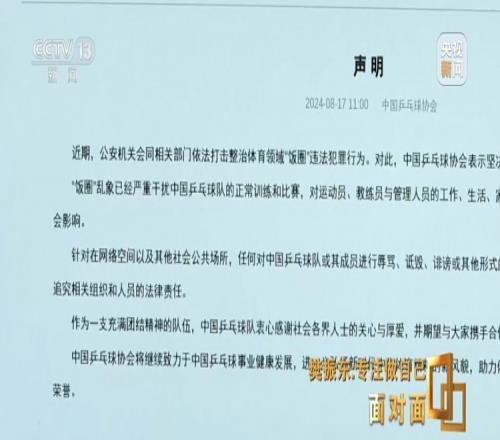 在一些体育项目和优秀运动员受到关注和追捧的大环境中,出现的非理性追星行为被称为饭圈文化。从社交媒体上粉丝之间的互撕谩骂、到线下追星时的围追堵截、恶意攻击,部分极端且失控的“饭圈”行为,很难不对运动员的比赛、训练乃至日常生活造成影响,8月17日,中国乒协发布声明,强烈谴责了饭圈乱象。
