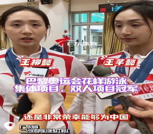 目前两人已经回到了回到广东二沙体育训练中心,并接受了记者采访。王柳懿说道:“非常荣幸能够为中国,为广东取得这样的成绩,上一次回来已经是很久之前的事情了,但是回来感觉到非常的亲切。”