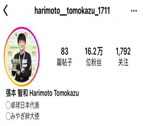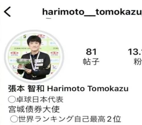 卧薪尝胆张本智和删除社媒简介“最高排名世界第2”
