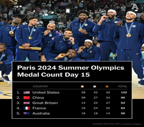 TA写道:奥运会最后一天。美国领衔总奖牌榜,但金牌榜的争夺尤为激烈,中国与美国仅差1枚。