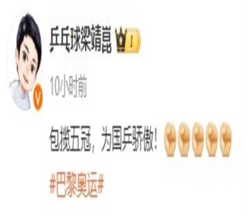 体育资讯8月11日报道宣称 中国乒乓球队结束本届奥运会征程,包揽全部五枚金牌。团体赛替补队员(P卡)梁靖崑&王艺迪祝贺乒乓球包揽5金。