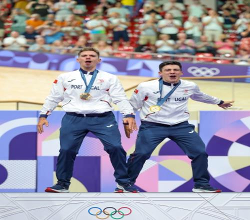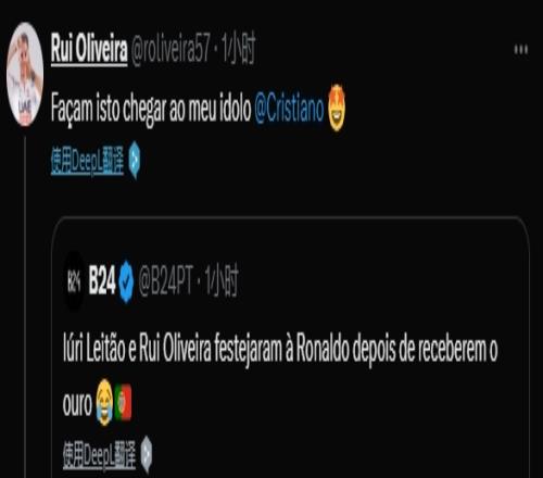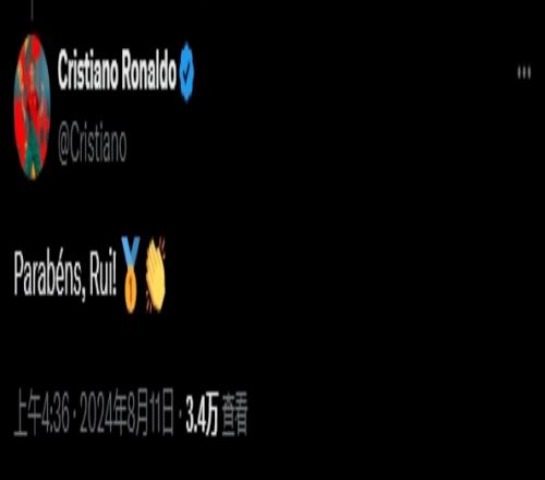 2024巴黎奥运会场地自行车男子麦迪逊赛,葡萄牙夺本届奥运会首金。赛后,葡萄牙组合鲁伊-奥利维拉和尤里-莱托在颁奖台上模仿了C罗经典的SIU庆祝动作。鲁伊-奥利维拉赛后更新社媒,晒出庆祝图片,配文:献给我的偶像,C罗。C罗也在这条动态下回复:恭喜你,鲁伊。↓