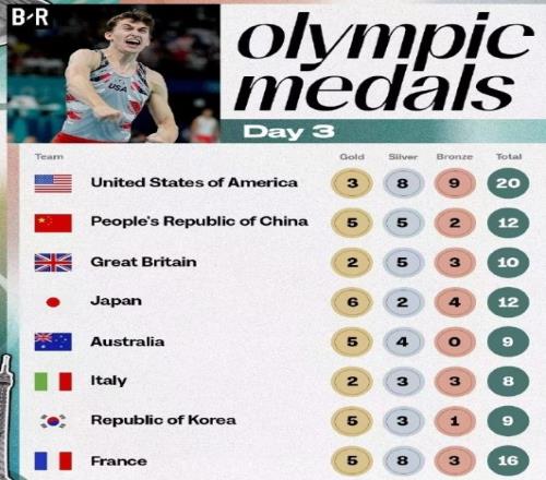 本届奥运开始前几天,BR按照奖牌榜排序↓