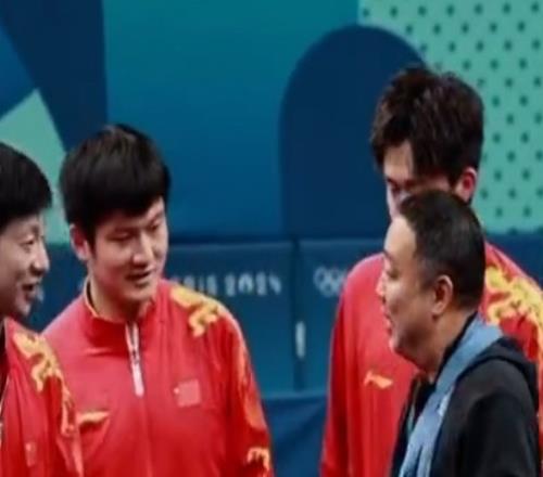 由于孙颖莎、陈梦、王曼昱、樊振东、王楚钦已经给刘国梁戴了5枚金牌,象征中国队包揽5金。马龙就把自己的金牌放兜里了,和刘国梁嘿嘿一笑。