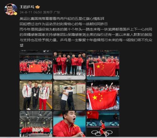体育资讯8月11日报道宣称 中国乒乓球队结束本届奥运会征程,拿下五枚金牌。王皓发文总结本届比赛。
