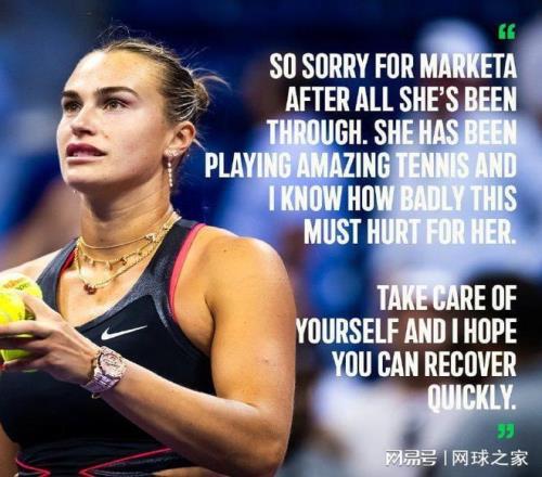 而获知这一消息之后,萨巴伦卡也发文祝万卓索娃早日康复,“我为Marketa感到难过,她经历了太多。她一直有着非常出色的表现,我知道这对她来说有多痛苦。请照顾好自己,愿你早日康复。”