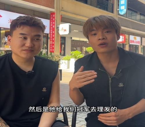 康仔:昨天的事情经过是这样的,因为昨天我不在店里,然后是他给我们的冠军去理发的。当时他本人还是非常低调的,戴了个口罩,大家都知道,来理发店理发师都会去跟顾客沟通话题,无意中聊到你是做什么工作的。
