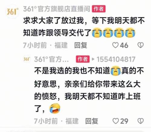 因为与张水华签约,网友纷纷涌入361度的直播间,大家并不买东西,各种留言。除了在直播间留言,网友还在361度的账号评论区留言,这些留言当然不是什么好话,以至于361度不得不关闭账号评论区。
