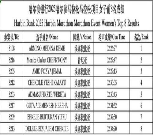 哈尔滨马拉松成绩公示。
