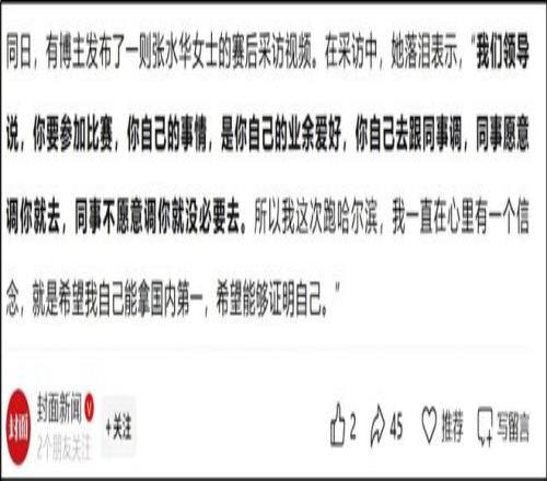 只能说张水华是一名成熟跑者,但在面对镜头时还不够成熟,没想好怎么表达自己的诉求。