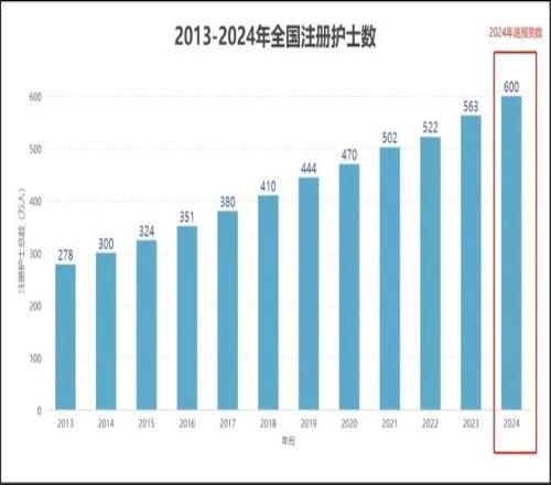 过去一二十年,我国护士数量迅猛增长,截至2023年底,注册护士总量达563.7万人。