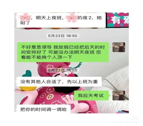 仔细看,不是领导不给调,而是张水华不想跟同事协调,直接让领导排班。
