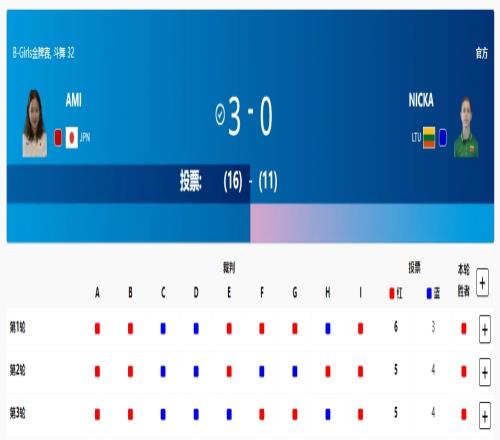 体育资讯08月10日报道宣称 2024巴黎奥运会,霹雳舞B-girls决赛,日本选手AMI 3-0立陶宛选手NICKA,获得金牌。