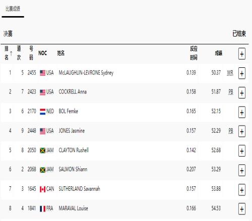 体育资讯8月9日报道宣称 奥运会田径女子400米跨栏决赛,美国选手麦克劳林以50秒37打破世界纪录和奥运会纪录,获得金牌!美国选手库克雷尔获得第二,波尔获得第三!