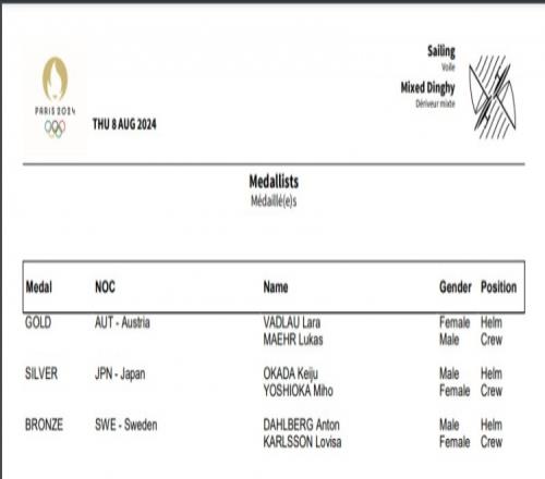 最终,奥地利组合拿到金牌,日本、瑞典组合分别拿到银牌和铜牌。