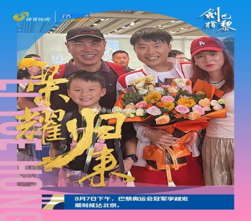体育资讯8月7日报道宣称 今天下午,北京首都国际机场接机大厅,在鲜花和掌声中,巴黎奥运会射击男子25米手枪速射金牌得主李越宏回家了。