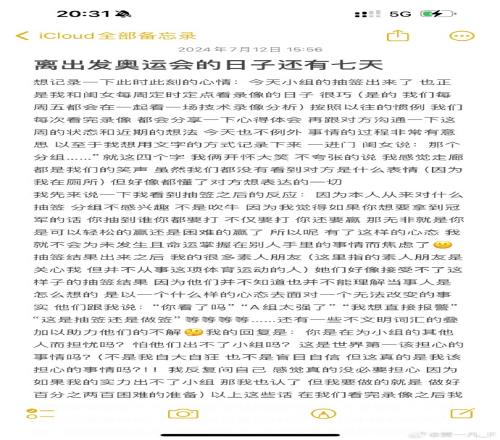 这篇日记写于7月12日,当时羽毛球女双小组抽签刚刚出炉,日记里记载了贾一凡和陈清晨当时的感受,贾一凡在社媒为这篇日记写道: