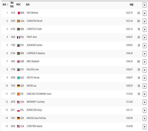 前四全破奥运纪录!女子3000米障碍赛决赛:巴林选手亚维夺金