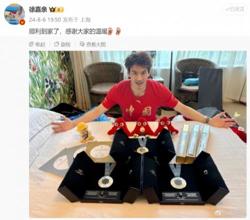 徐嘉余顺利到家,晒去年所写愿望:努力、赚钱、奥运会大放光彩