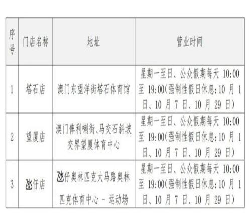 澳门赛区线下门票代售网点具体信息(仅销售澳门赛区门票)