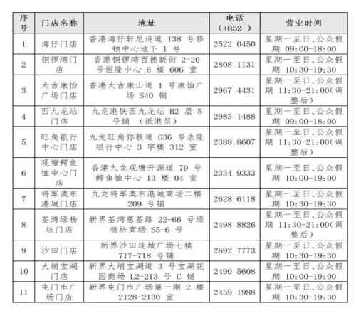 香港中国旅行社11家网点信息(仅销售香港赛区门票)
