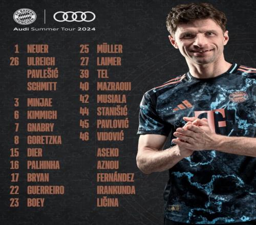 体育资讯7月31日报道宣称 今日,拜仁官方公布了季前赛阵容大名单,穆勒领衔,穆西亚拉、帕利尼亚在列,凯恩缺席。