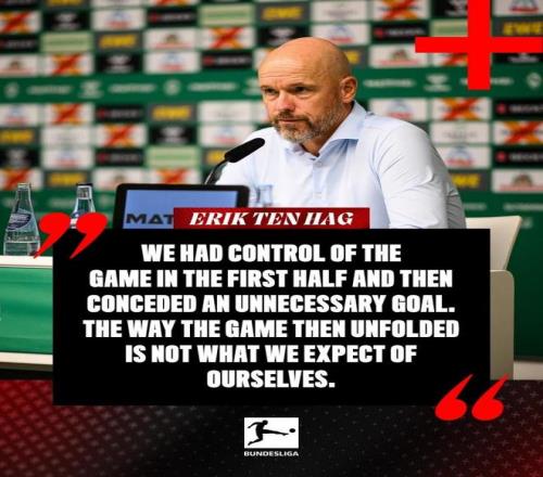 在发布会上,滕哈赫表示:我们在上半场控制住了比赛,然后丢了一个不该丢的球,比赛的进程没有达到我们的预期。