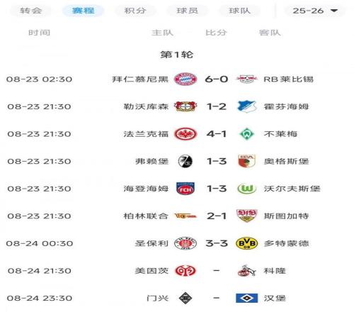 德甲首轮战罢多场,拜仁6-0大胜劲旅莱比锡,几乎锁定首轮榜首。反观其他强队,翻车一大堆。