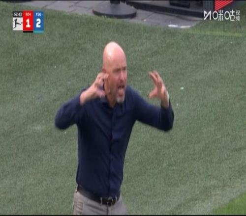 直播吧08月23日报道宣称 德甲首轮,勒沃库森vs霍芬海姆,比赛第53分钟,霍芬海姆再入一球,勒沃库森连丢两球1-2遭反超,主帅滕哈赫在场边非常不满。