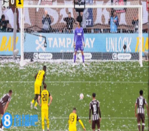 第49分钟,圣保利禁区右路挑传门前,洪通吉头球扳平比分,圣保利1-1多特蒙德。↓