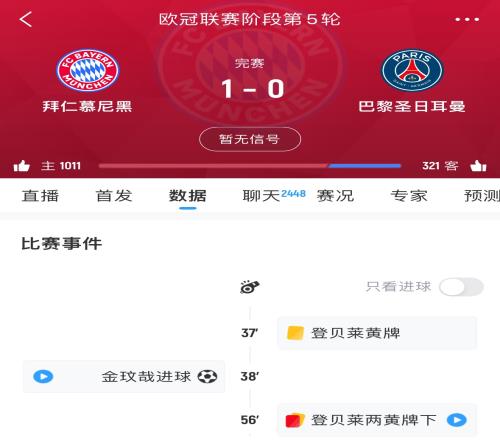 在去年11月的欧冠联赛阶段比赛中,拜仁1-0击败巴黎圣日耳曼,那场比赛登贝莱两黄变一红被罚下。