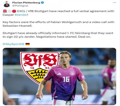 斯图加特已经正式通知纽伦堡,他们希望签下詹德,两家俱乐部已就此展开谈判。