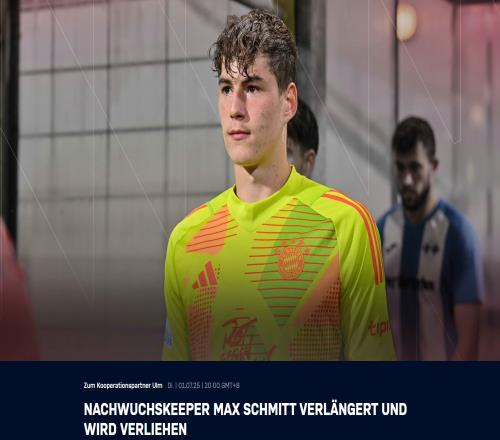 体育资讯7月2日报道宣称 拜仁官方宣布,和19岁门将马克斯-施密特续约至2027年,并将其外租至乌尔姆1个赛季。