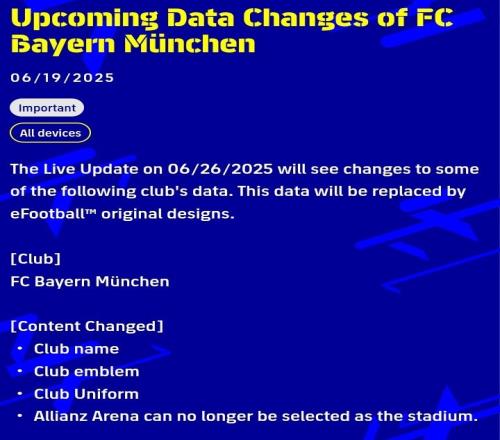 体育资讯6月19日报道宣称 官方消息,日本企业科乐美已失去拜仁慕尼黑的授权许可。