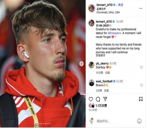 赛后,卡尔在社媒对自己的拜仁首秀向俱乐部深深感谢。