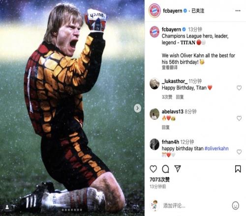 体育资讯6月15日报道宣称 今日是拜仁传奇门将卡恩56岁生日,拜仁官方社媒晒照发文为其送上祝福。