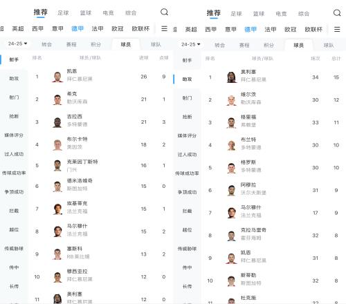 个人荣誉方面,凯恩连续两个赛季斩获德甲金靴,奥利塞加盟首个赛季荣膺德甲助攻王。