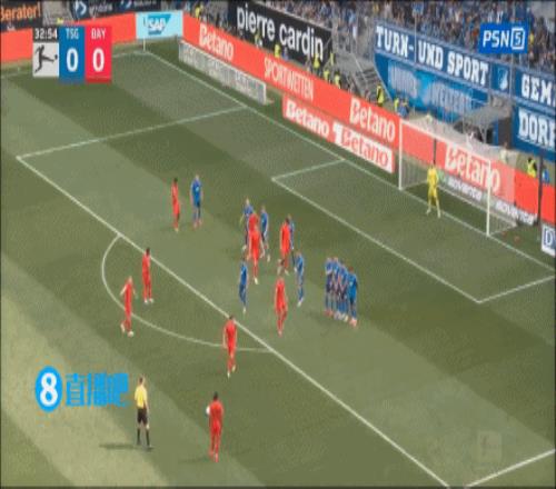 第33分钟,拜仁前场任意球机会,奥利塞主罚选择直接攻门,这球越过人墙打入近角,拜仁1-0霍芬海姆。↓