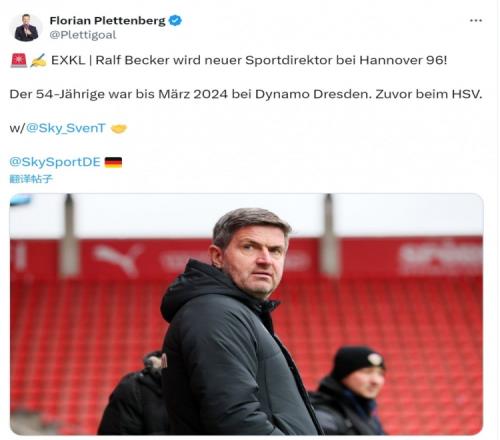 普莱滕伯格透露,54岁的拉尔夫-贝克尔将成为汉诺威俱乐部新任体育总监,贝克尔此前曾在斯图加特、荷尔斯泰因基尔、汉堡、德累斯顿迪纳摩等俱乐部任职。